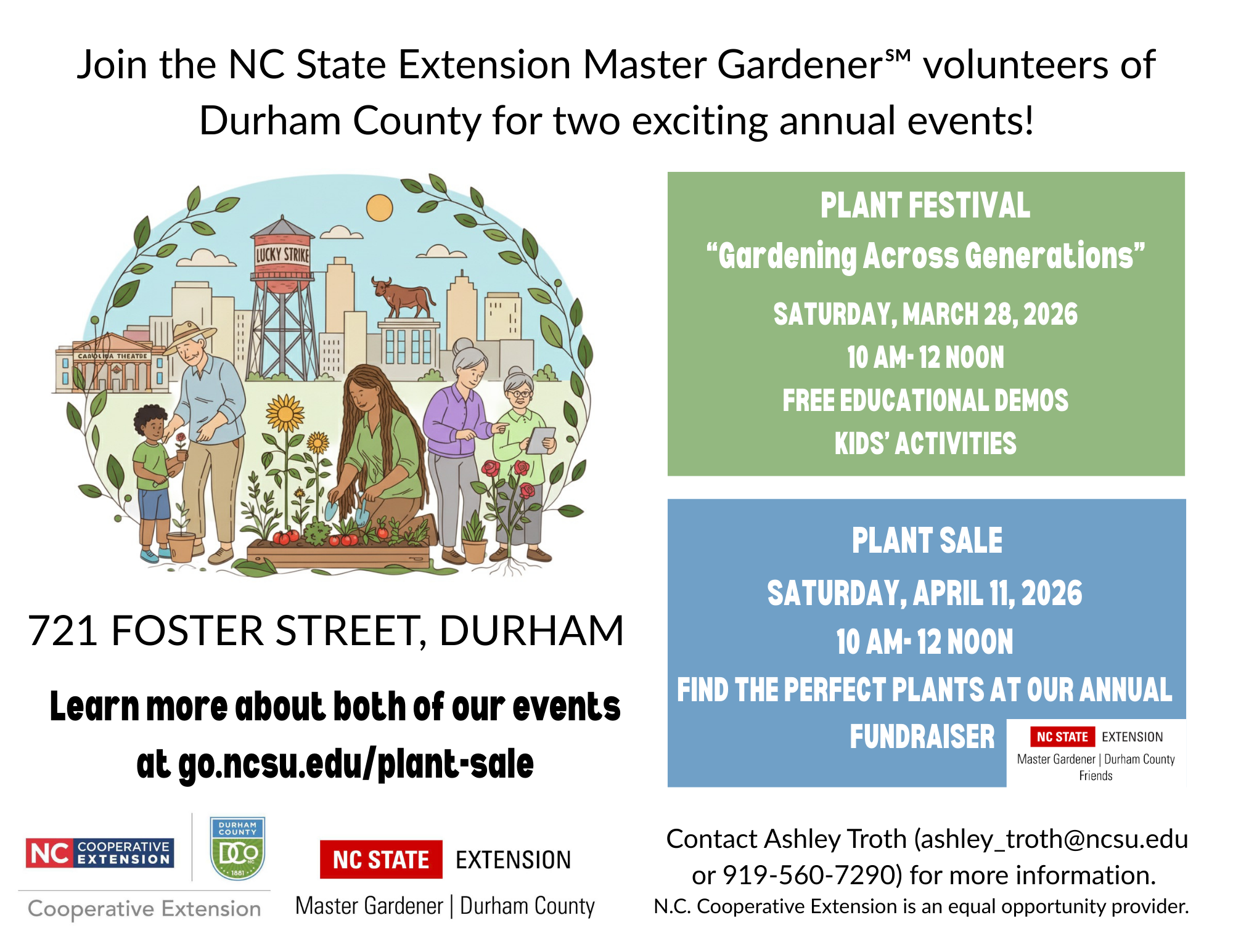 Two events give Durham gardeners a dependable way to learn, explore, and bring home plants that thrive. Both take place at 721 Foster St. in Durham. Whether you're preparing your first patio garden or refreshing established beds, you'll find reliable plants and clear, science-based guidance from trained Master Gardener volunteers.