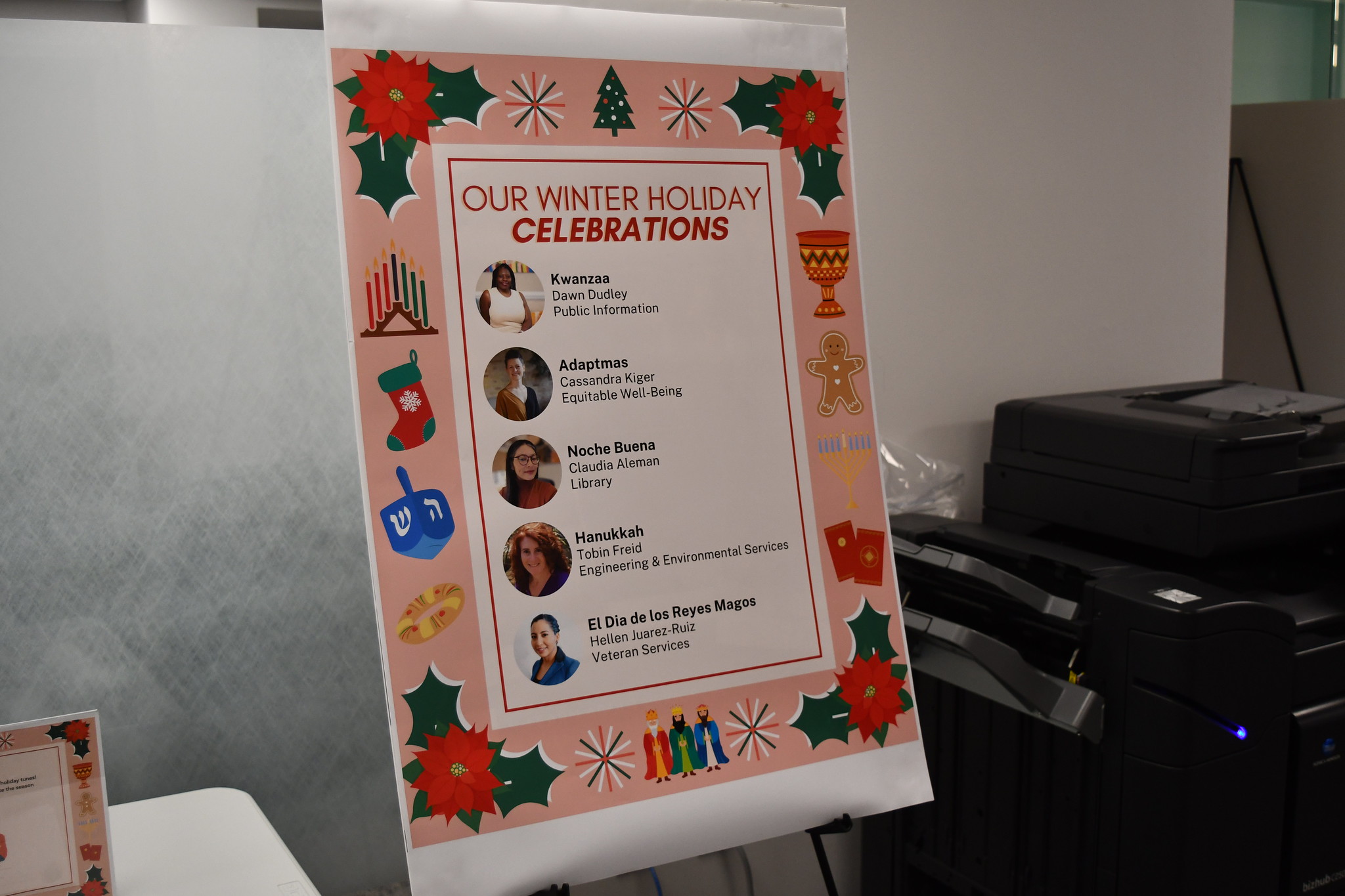 Celebrate the joy of the season with us. Learn, connect, and engage with the Office of Equitable Well-Being and the Public Information Office to learn more about being culturally awared during the holiday season. We all engage and celebrate diferently during the holidays. Come enjoy presentations from DCo employees on their unique cultural tranditions and celebrations through food, music, dance, song, and more!